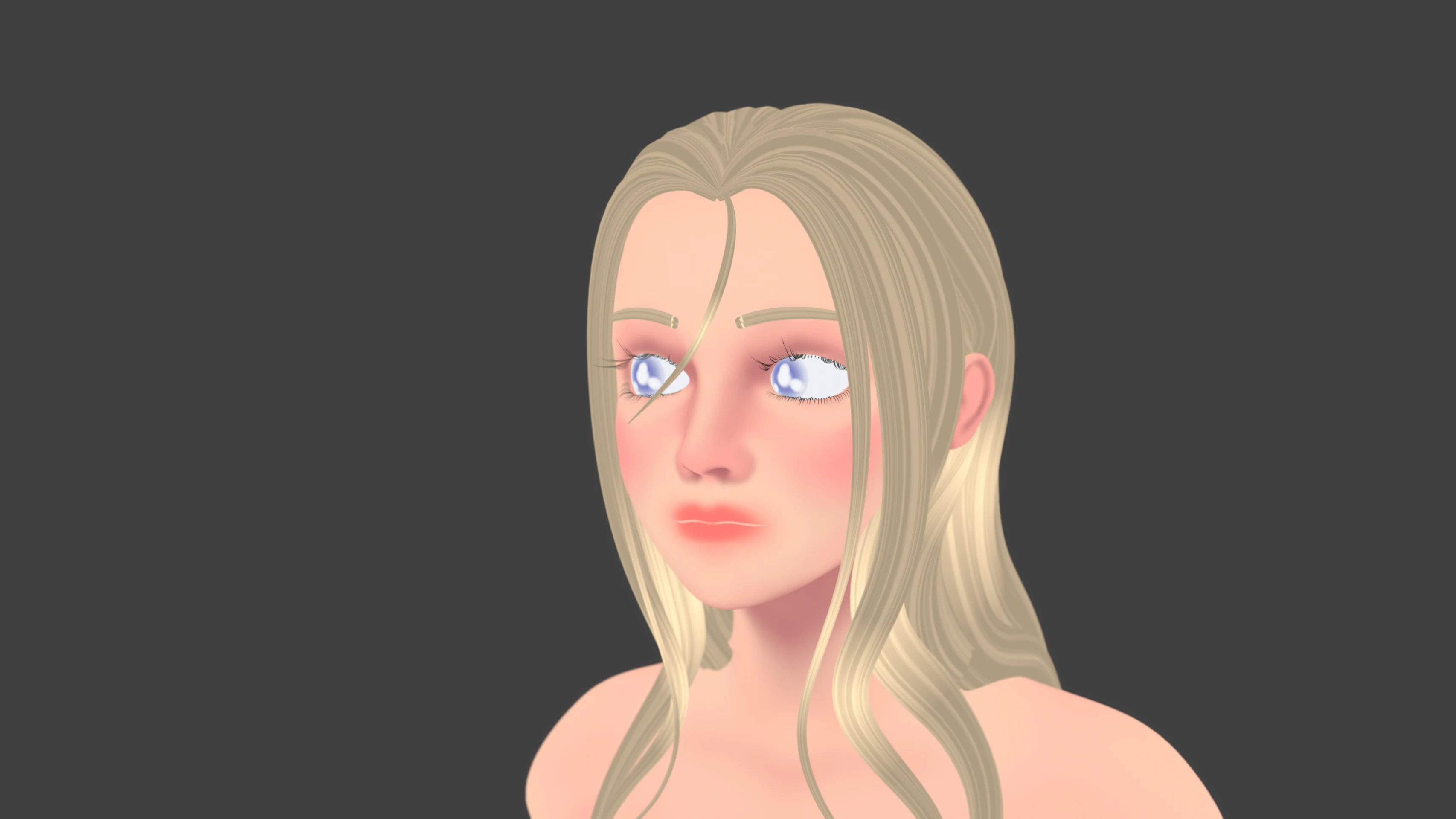 Alternative hairstyle variation with more of a PBR workflow, featuring baked normal maps transferred from high-poly sculpt to low-poly base.