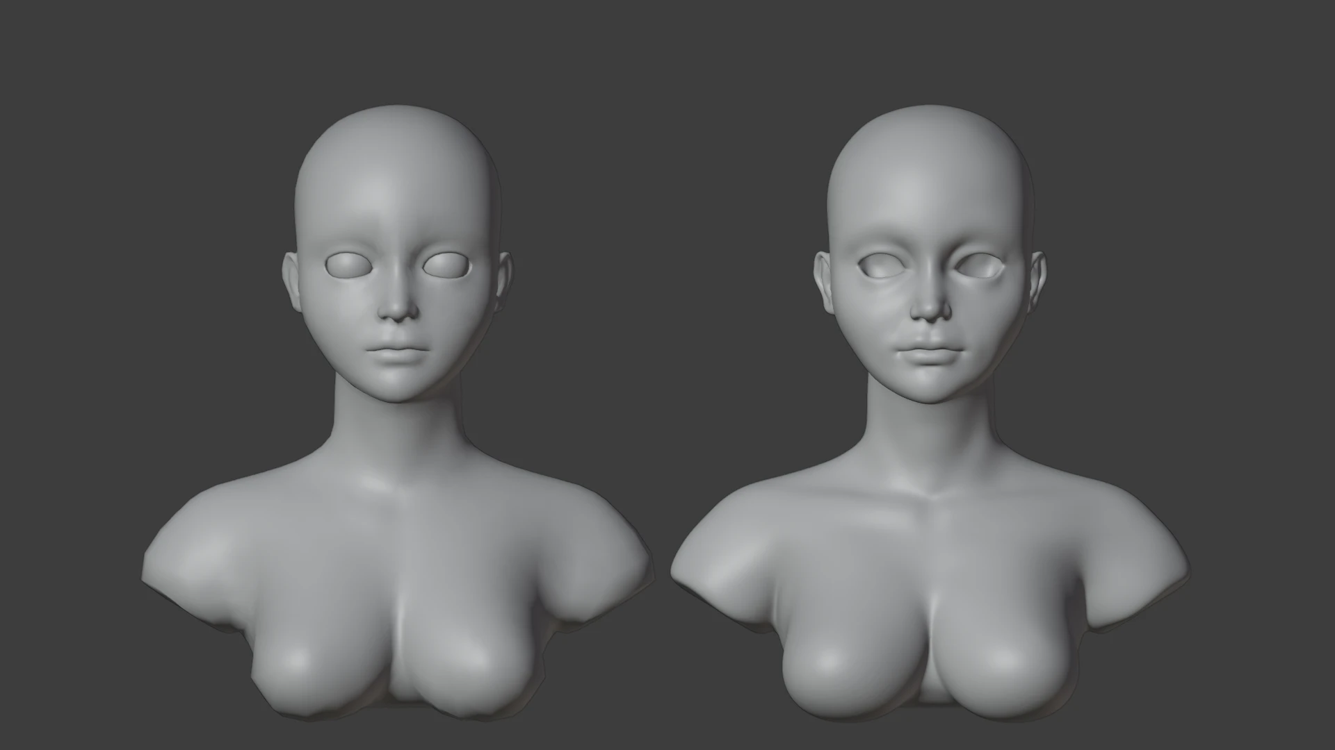 Front-facing view showcasing facial topology flow and overall proportions of the animation-ready mesh.